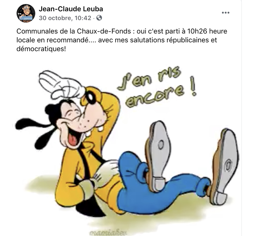 Sur son profil Facebook, public, on apprend qu’il est très en colère contre la ville et qu’il a déposé un recours. Comme l’écrit l’Agence télégraphique suisse relayée hier par la RTS, « un citoyen estime problématique le dépouillement sur deux jours. Le recourant ne conteste pas les résultats, qu’il pense exacts, mais considère que plusieurs articles de la loi cantonale sur les droits politiques n’ont pas été respectés.«