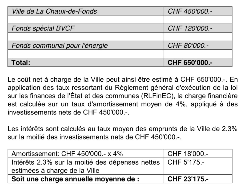 Le tableau ci-joint explique comment les 650’000 seront investis.
