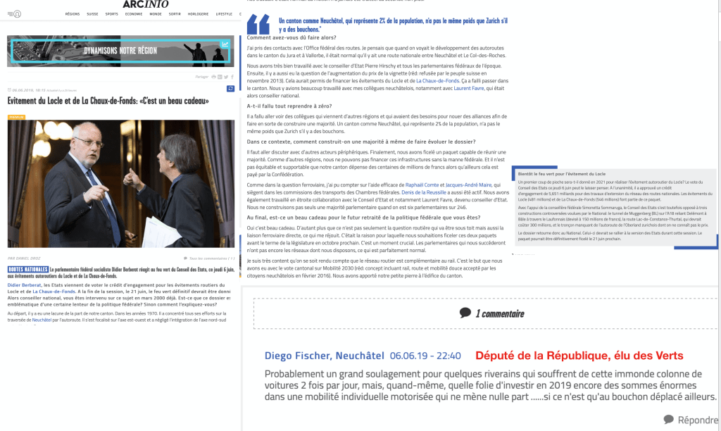 Quant aux Verts, on nous fait croire qu’ils s’engagent dans ce comité référendaire à titre privé. Laurent Debrot n’a jamais voté un crédit routier de sa vie au Grand Conseil. Et la Chaux-de-fonnière Florence Estrem Joray est aussi du membre du collectif La Tchaux Verte et fait partie du comité de l’initiative pour laisser le terrain de l’Ancienne sans parking devant le futur musée d’histoire naturelle à l’Ancien Stand. Elle a été candidate au Conseil général en octobre dernier. Ces deux personnes ont derrière elles un grand nombre de camarades qui partagent leurs points de vue.