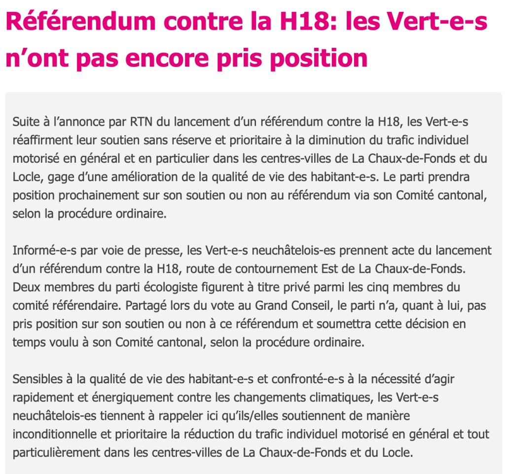 2 réponses à « Solidarités se désolidarise de La Chaux-de-Fonds en lançant un référendum contre la H 18 »