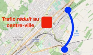 PAR AILLEURS : le contournement aura AUSSI et SURTOUT des effets positifs sur l’est de la ville : rues de la Balance, du Versoix, rue Neuve, Léopold-Robert et rue du Collège qui sont totalement saturées aux heures de pointe. Le centre historique de La Chaux-de-Fonds va gagner en attractivité.